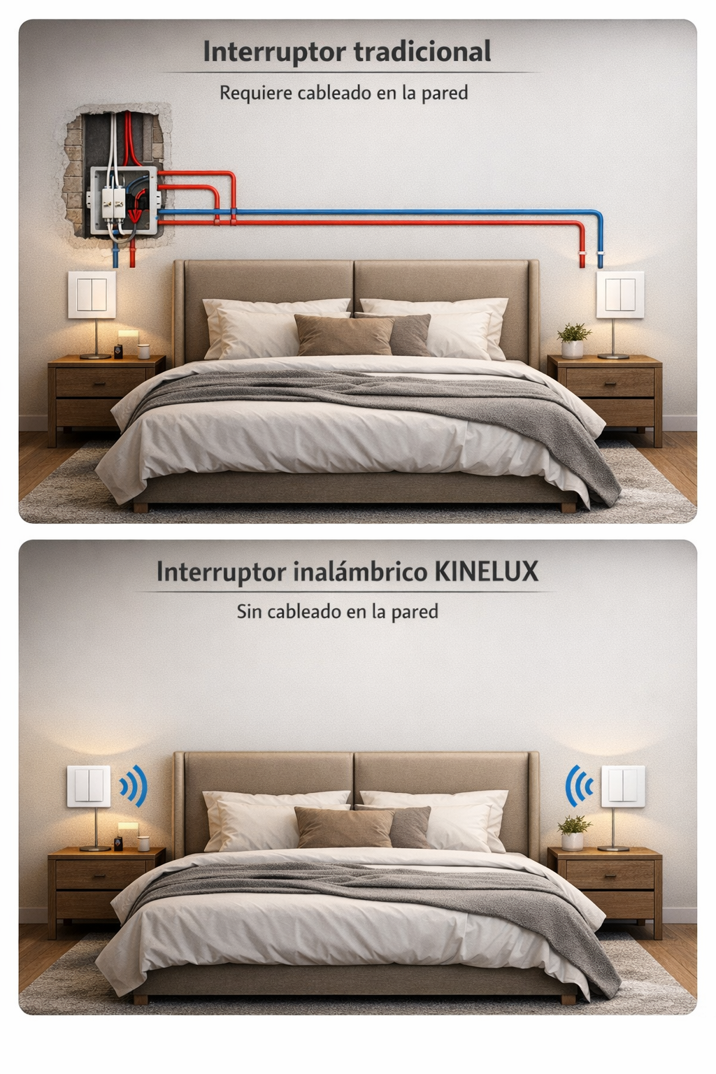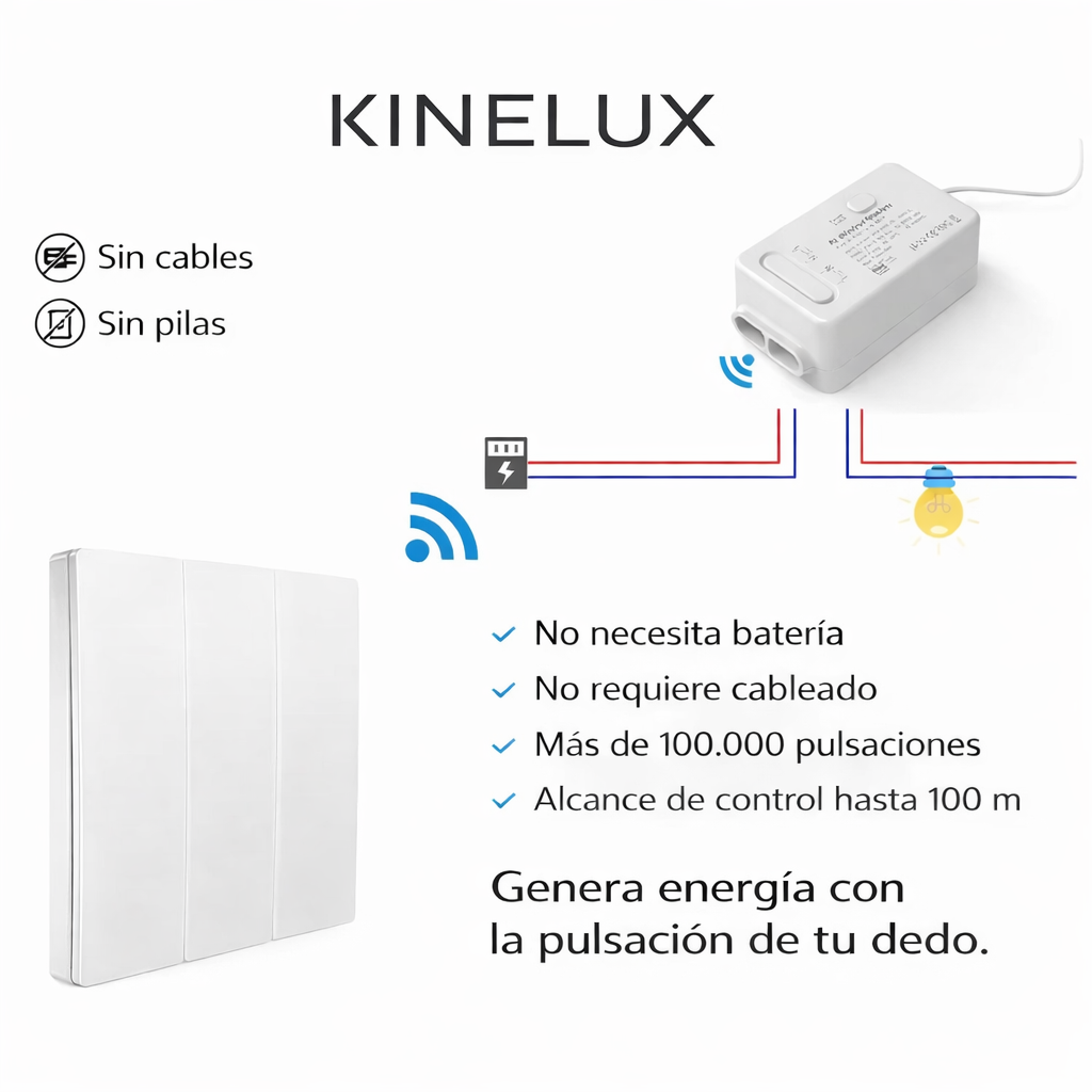 KINELUX es un interruptor inalámbrico que funciona sin cables ni pilas.